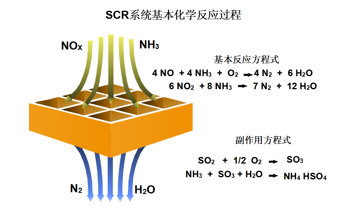 | 發(fā)電機(jī)SCR煙氣脫硝系統(tǒng) SCR簡(jiǎn)介 l 選擇性催化還原是一套針對(duì)柴油發(fā)動(dòng)機(jī)排氣的NOx控制方法。 l 過程涉及向催化器內(nèi)的排氣噴射尿素。 l SCR—是發(fā)動(dòng)機(jī)排氣后處理的一種方式。 l Selective—只處理發(fā)動(dòng)機(jī)排氣中特定成分。 l Catalytic—需要催化劑參與化學(xué)放映。催化劑需要發(fā)動(dòng)機(jī)排氣的加熱。 l Reduction—化學(xué)反應(yīng)的結(jié)果,減少發(fā)動(dòng)機(jī)排氣中特定成分。是排放達(dá)到法規(guī)的要求。 l 脫除燃料燃燒中產(chǎn)生的氮氧化物的技術(shù),主要是利用氨與NOx發(fā)生反應(yīng),產(chǎn)生無害的氮?dú)釴2和水(H2O)。 ① SCR系統(tǒng)及應(yīng)用 SCR系統(tǒng) SCR系統(tǒng)應(yīng)用 ② SCR系統(tǒng)化學(xué)反應(yīng)原理 ![]() ③ SCR系統(tǒng)催化劑選型 還原劑和催化劑的種類 還原劑:無水氨、氨水、尿素溶液 催化劑:V2O5/WO3/TiO2 SCR系統(tǒng)蜂窩狀催化劑簡(jiǎn)介 SCR--柴油機(jī)選擇性還原催化(噴氨還原NOx技術(shù))后處理系統(tǒng) ,貴金屬和稀土元素涂復(fù)在蜂窩陶瓷載體上。 ④ 產(chǎn)品凈化率及特點(diǎn)